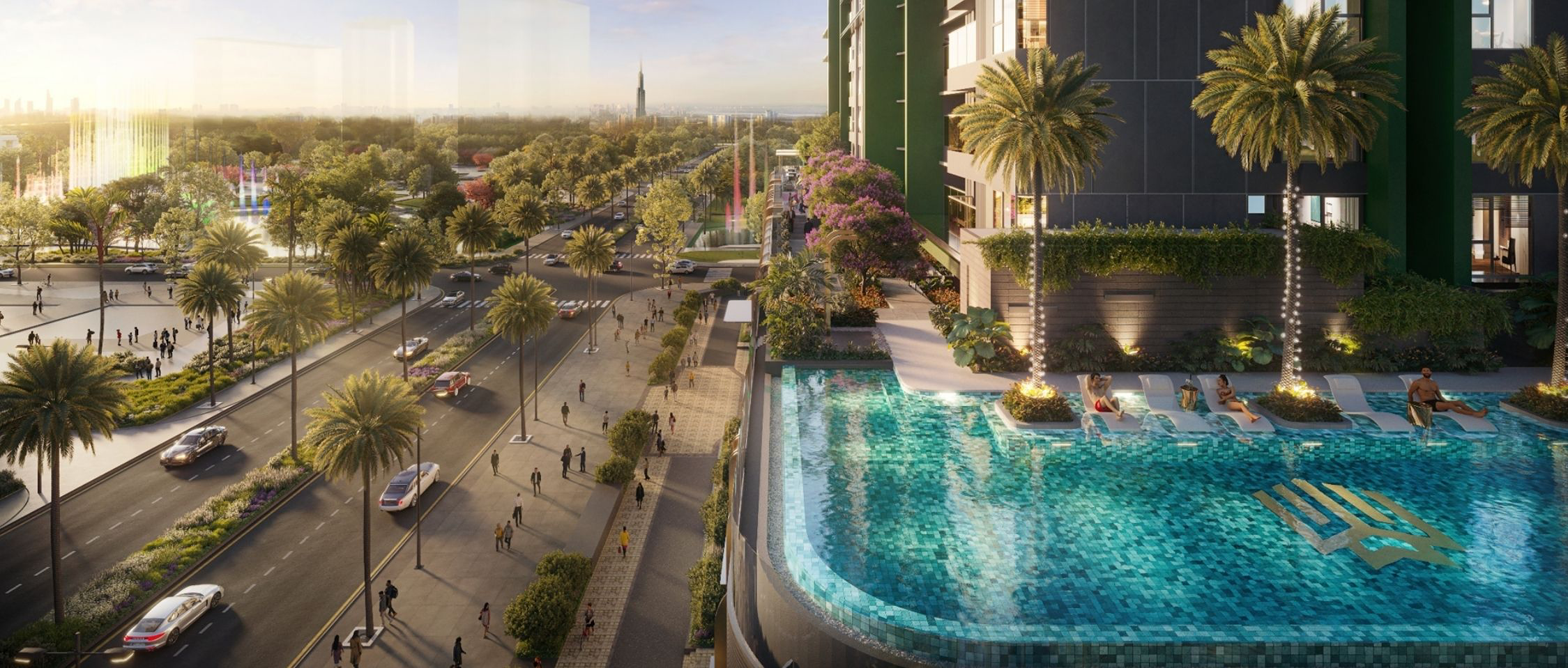 Tại đây, từng chi tiết được chăm chút tỉ mỉ – từ làn nước trong vắt nơi hồ bơi tầng thượng đến ánh đèn rực rỡ từ đại lộ phía dưới – tất cả đều góp phần tạo nên một không gian sống riêng tư, hiện đại và đầy khác biệt.